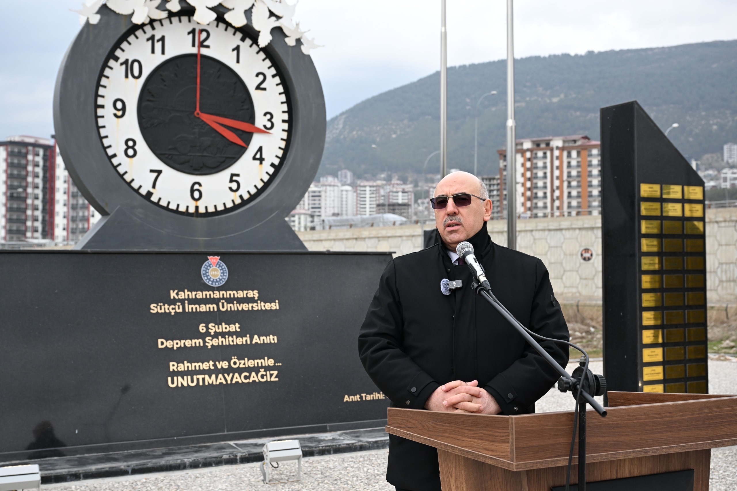 Cuma namazı sonrasında, 6 Şubat Depremlerinde hayatını kaybeden KSÜ personeli ve öğrencileri anısına 2025 yılında inşa edilen Deprem Şehitleri Anıtı’nda Kur’an-ı Kerim tilaveti okunarak dualar edildi ve anma töreni gerçekleştirildi.