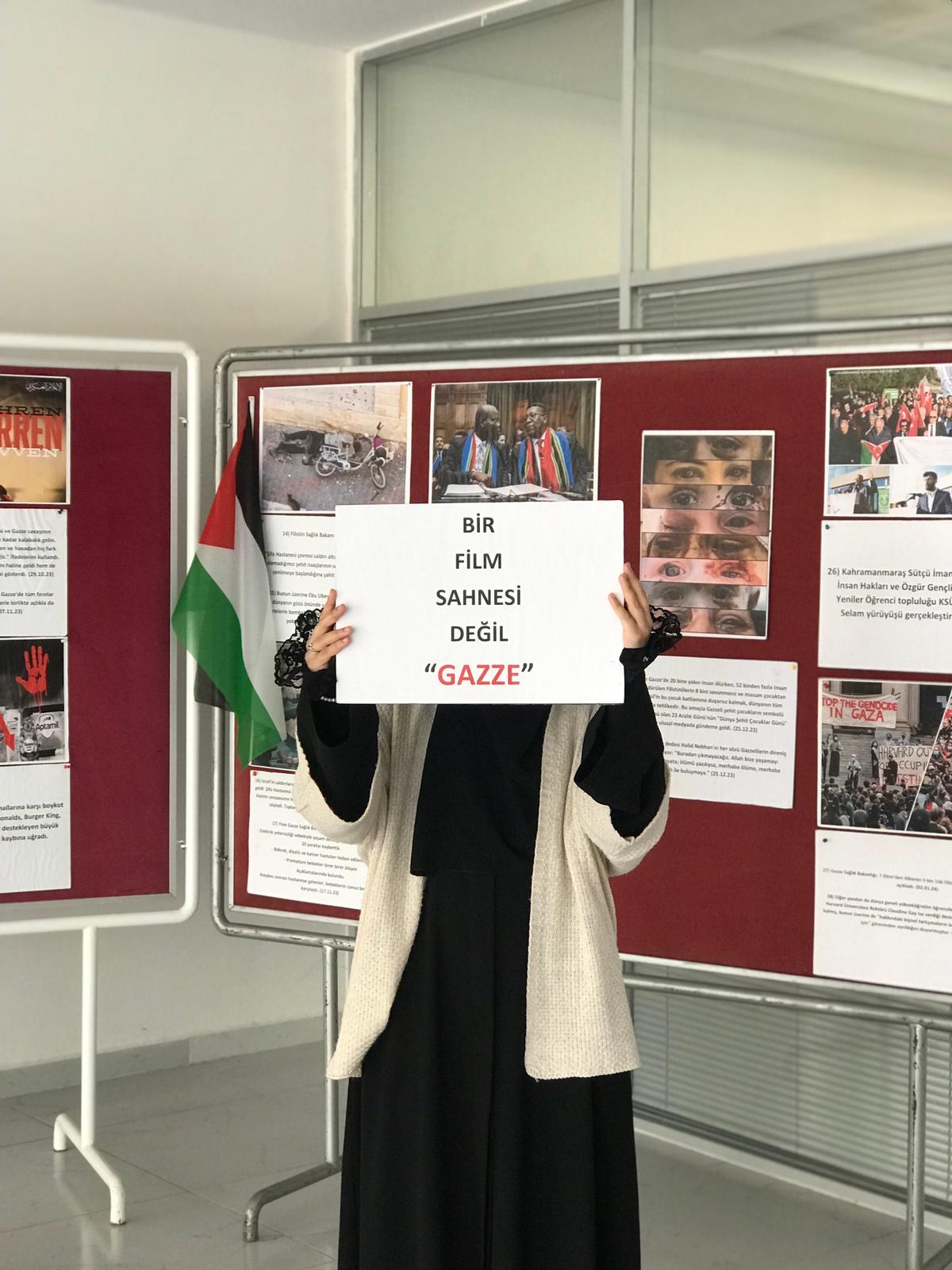 Kahramanmaraş Sütçü İmam Üniversitesi’nde (KSÜ), İnsan Hakları ve Özgür Gençlik Topluluğu tarafından hazırlanan “Soykırımın İkinci Yılında Fotoğraflarla Gazze” temalı sergi, Teknik Bilimler Meslek Yüksekokulu’nda ziyaretçilere kapılarını açtı. Sergi, Gazze’de yaşanan insanlık dramını ve bölge halkının direnişini fotoğraf kareleriyle gözler önüne serdi.