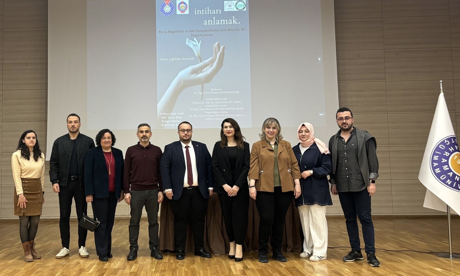 KSÜ Sosyal Hizmet Öğrenci Topluluğu ve Kahramanmaraş Sütçü İmam Üniversitesi Genç Yeşilay Öğrenci Topluluğu iş birliğiyle gerçekleştirilen program, intiharı anlama ve bu alandaki farkındalığın artırılmasına yönelik önemli bir akademik buluşma olarak değerlendirildi. Program sonunda katılımcılar toplu fotoğraf çekimi gerçekleştirdi.