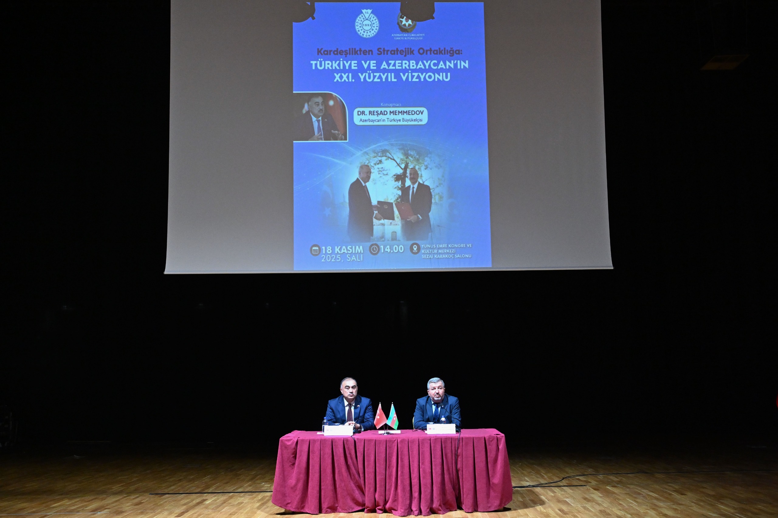 Yunus Emre Kongre ve Kültür Merkezi Sezai Karakoç Konferans Salonu'nda düzenlenen etkinlikte, Azerbaycan'ın Türkiye Büyükelçisi Dr. Reşad Memmedov, iki ülkenin geleceğe yönelik güçlü işbirliği adımlarını ve Türk Coğrafyasındaki rolünü masaya yatırdı.