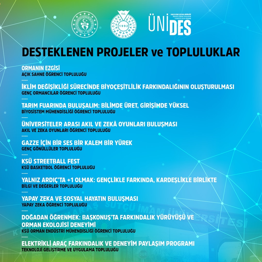 KSÜ’den 10 Öğrenci Topluluğu Projesi ÜNİDES’tenDestek Almaya Hak Kazandı