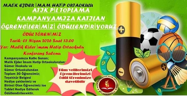 Malik Ejder İmam Hatip Ortaokulu’nda ödüllü atık pil kampanyası tamamlandı