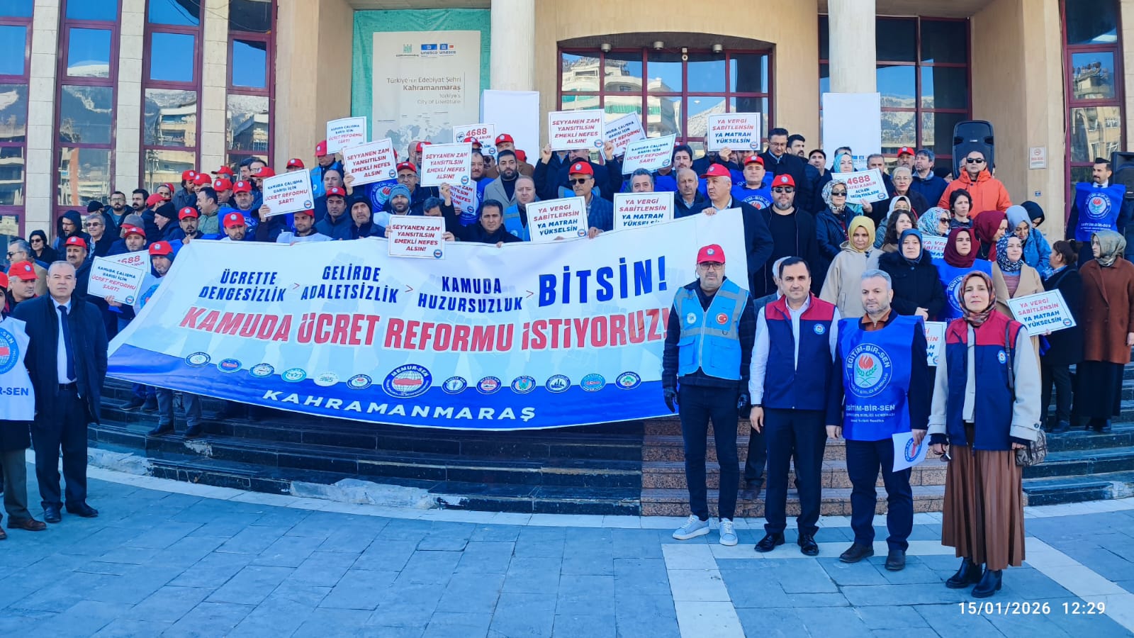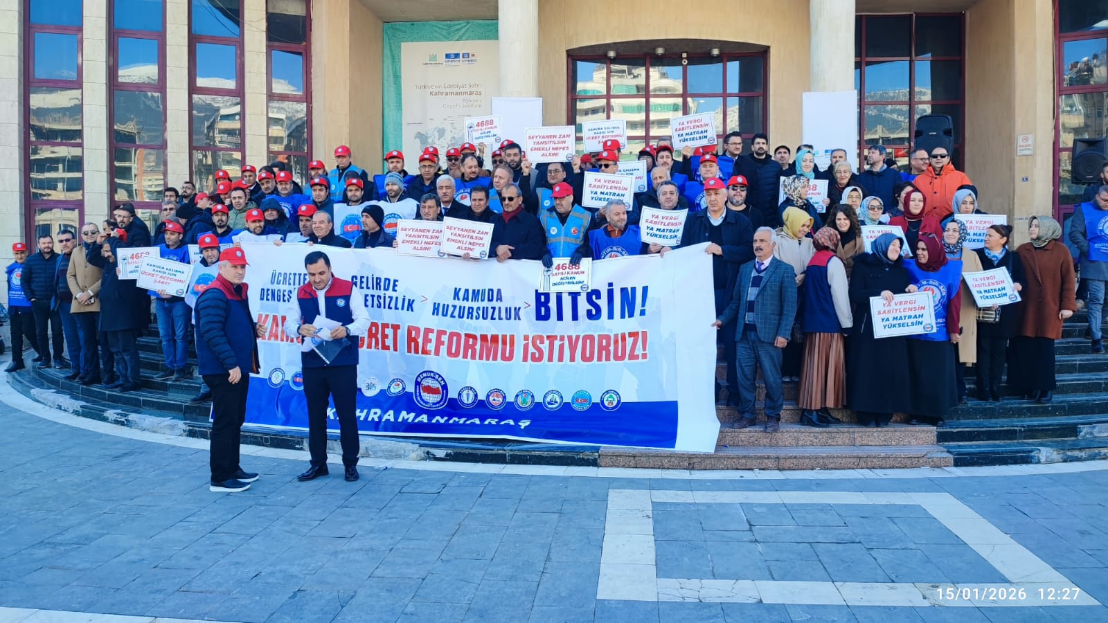 Kahramanmaraş’taki basın açıklamasını yapan Memur Sen İl Başkanı Mehmet Çetin, kamu görevlilerinin maaş politikaları nedeniyle ciddi bir adaletsizlikle karşı karşıya bırakıldığını belirterek, kamuda iş barışının bozulduğunu vurguladı.