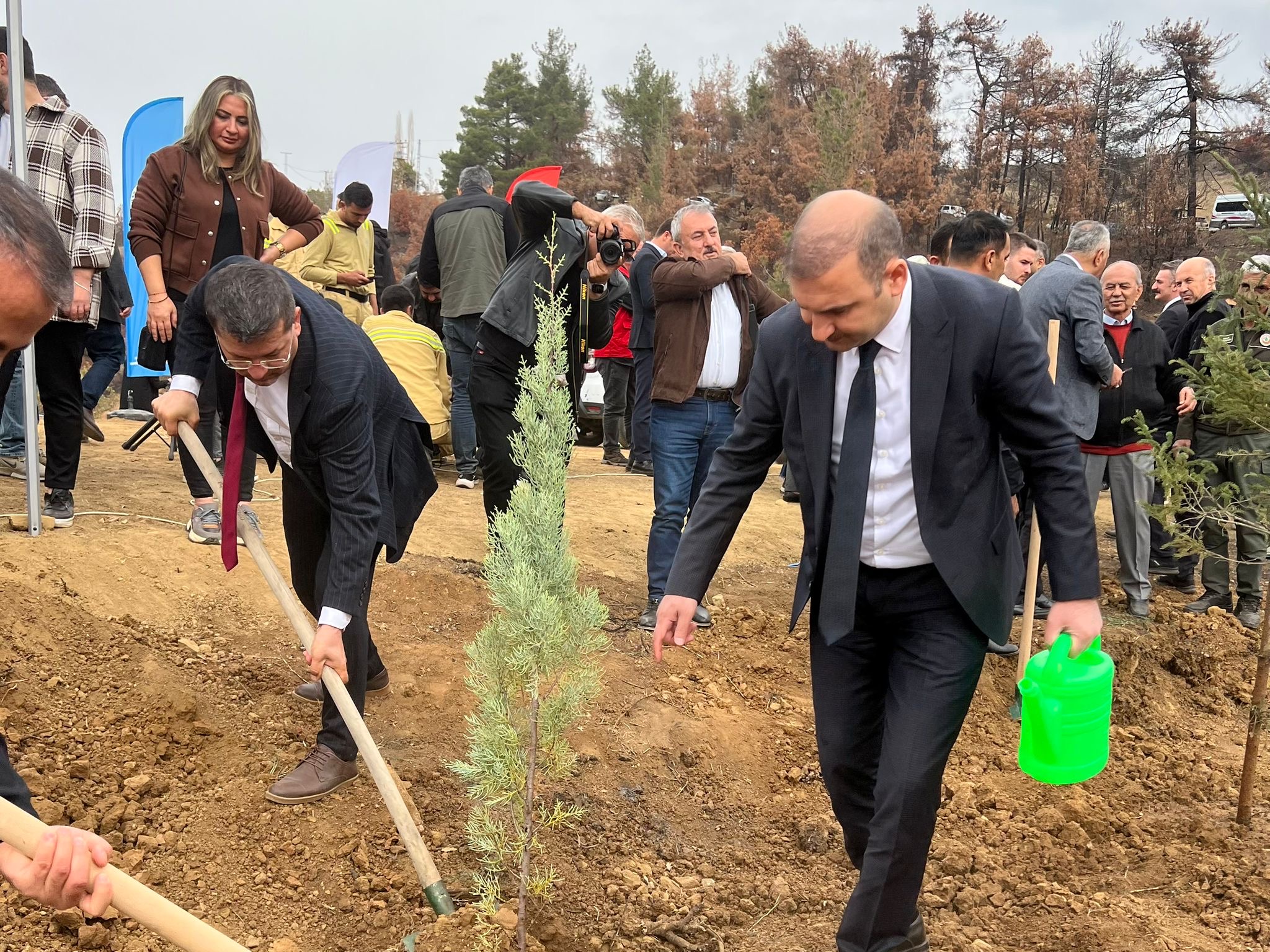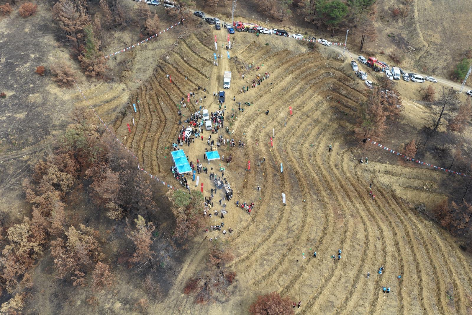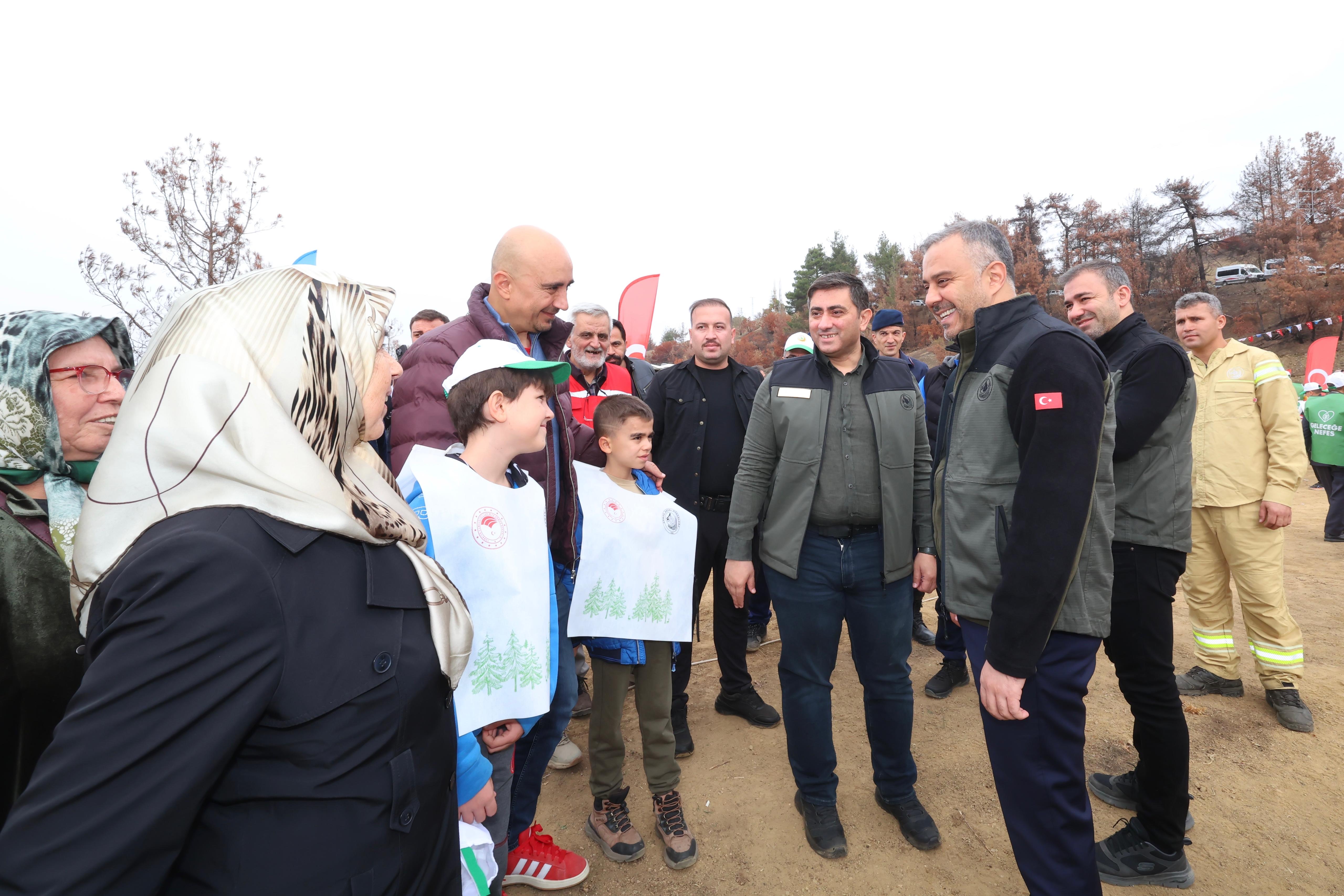 Etkinlik boyunca yüzlerce vatandaş, öğrenciler ve gönüllüler fidan dikimine katılarak, yangında zarar gören alanların yeniden yeşermesi için el birliğiyle fidanları toprakla buluşturdu.
