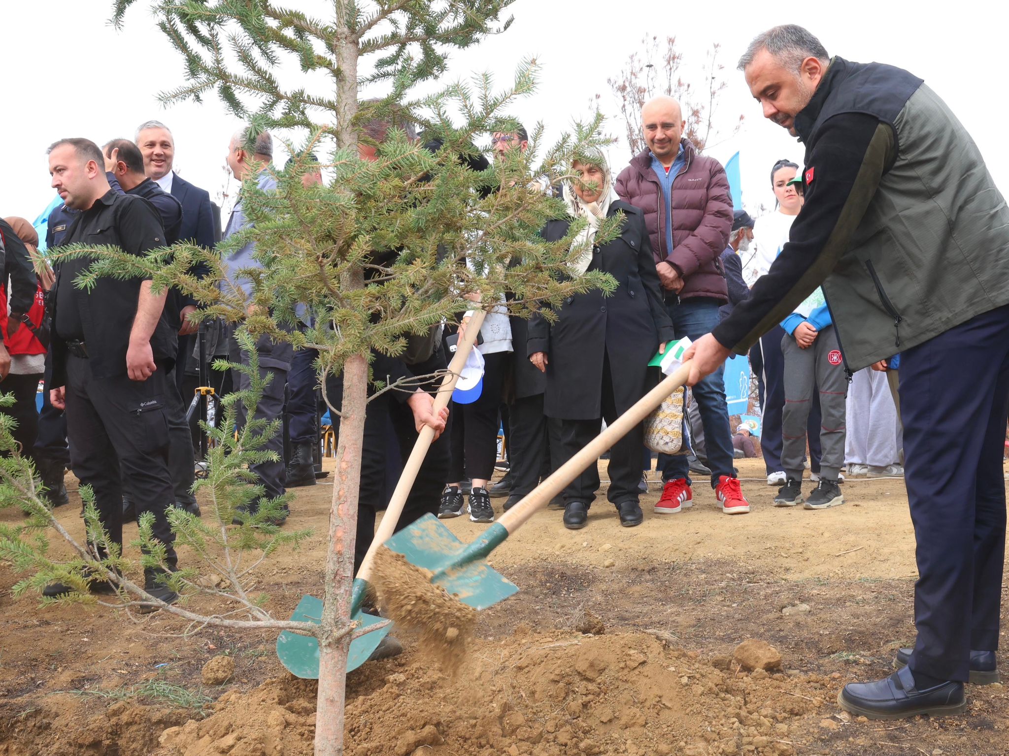 Konuşmaların ardından fidanlar toprakla buluşturuldu, can suyu verildi.
