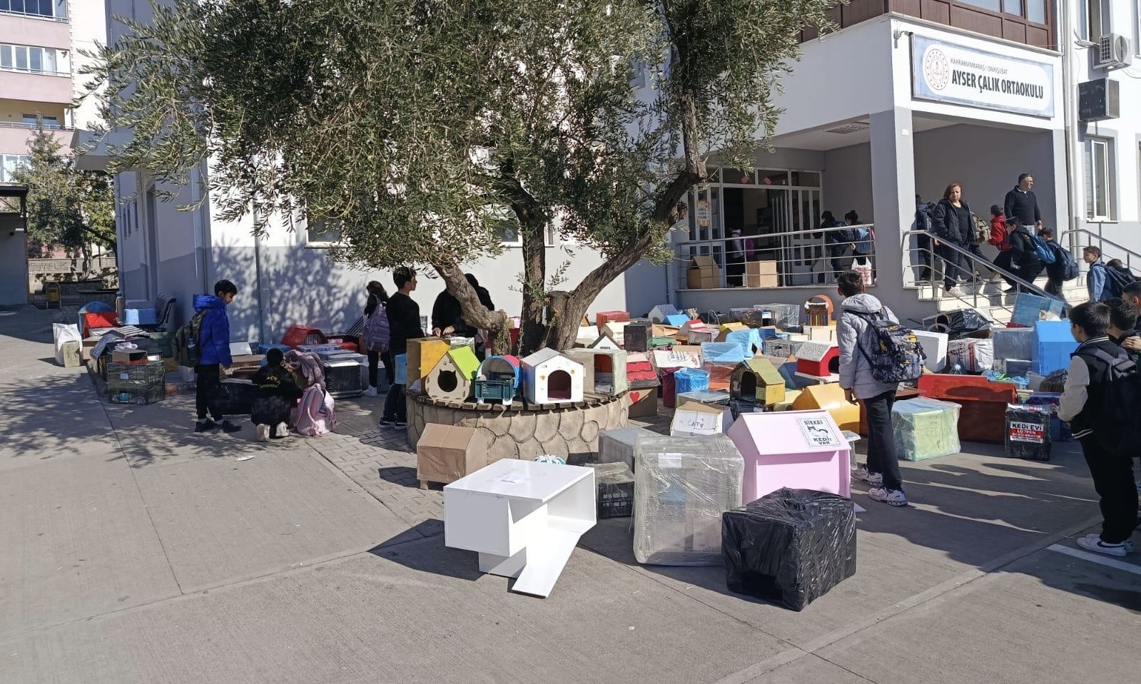 Kullanım dışı kalan masa, dolap ve plastik kasaların yeniden değerlendirilmesiyle gerçekleştirilen projede öğrenciler, hem çevre bilincini uygulamalı olarak öğrenme fırsatı buldu hem de hayvan sevgisini somut bir davranışa dönüştürdü. Öğretmenlerinin rehberliğinde çalışan öğrenciler, velilerin de desteğiyle birbirinden renkli, dayanıklı ve korunaklı kedi evleri tasarladı.