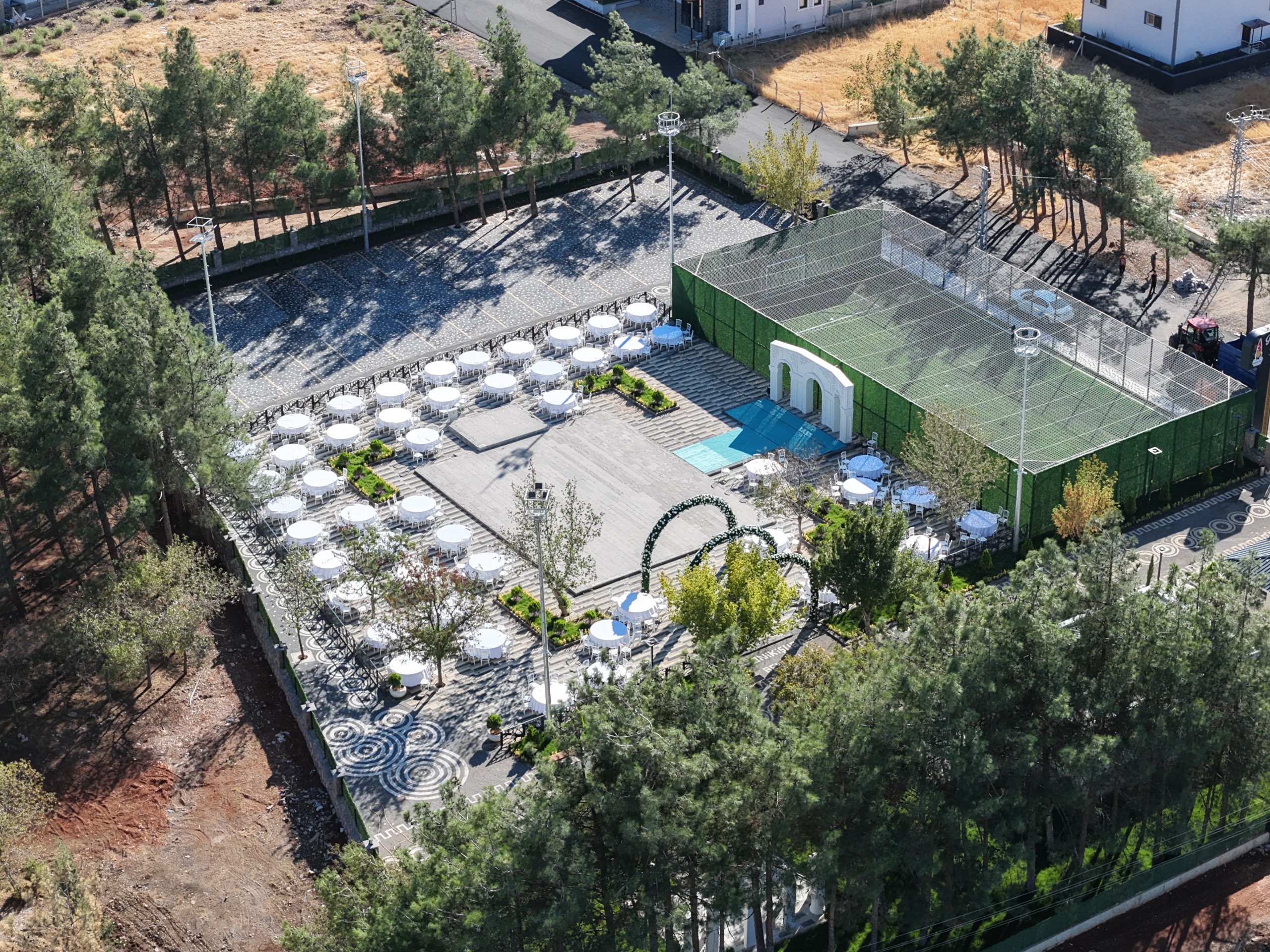 Doğayla iç içe konumlandırılan Kavlaklı 1000 Kişilik Kır Düğün Salonu, modern mimarisi ve estetik detaylarıyla dikkat çekiyor. Geniş açık alanı, kır konseptine uygun peyzaj düzenlemesi, konforlu oturma planı ve güçlü teknik donanımıyla Onikişubat’ın en nitelikli sosyal tesislerinden biri haline geldi.