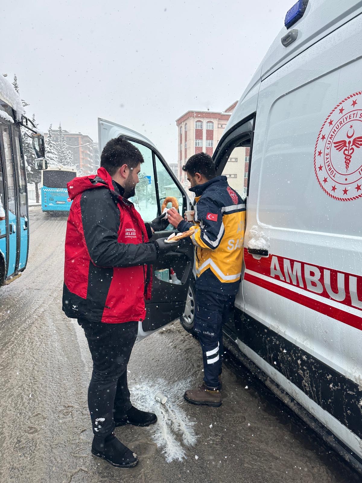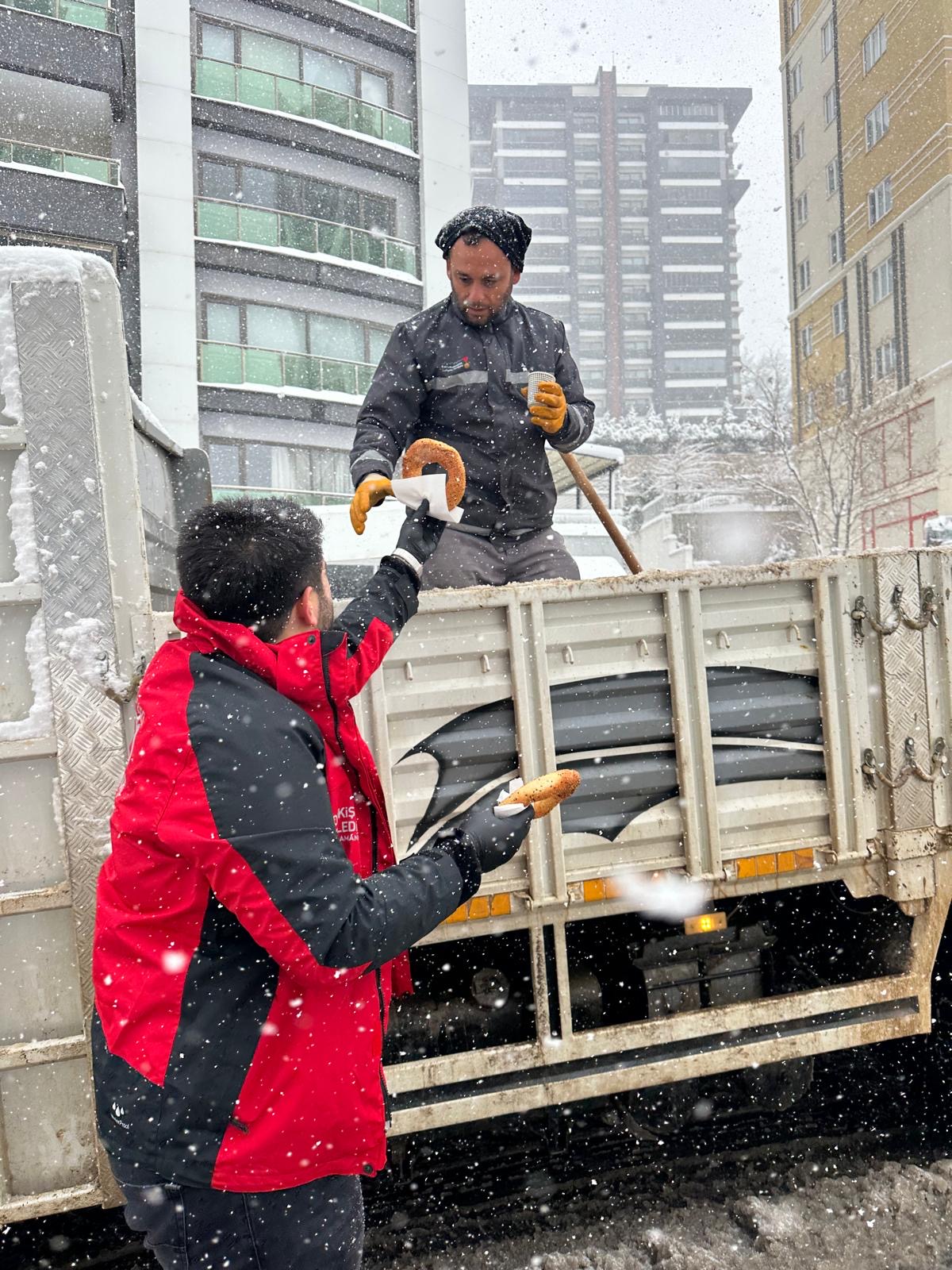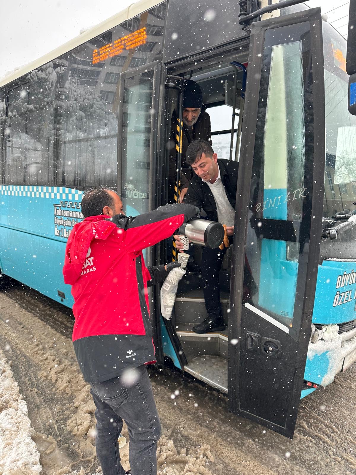 Kar yağışının etkisini artırdığı özellikle sabah ve akşam saatlerinde, halk otobüslerinde yolculuk yapan vatandaşlar ile duraklarda bekleyen hemşehrilerimize ulaştırılan ikramlar, soğuk havada içleri ısıttı. Aynı zamanda yoğun mesai harcayan karla mücadele ekipleri de unutulmadı. Sahada gece gündüz görev yapan belediye personeline yapılan ikramlar, ekiplerin moral ve motivasyonuna katkı sağladı.