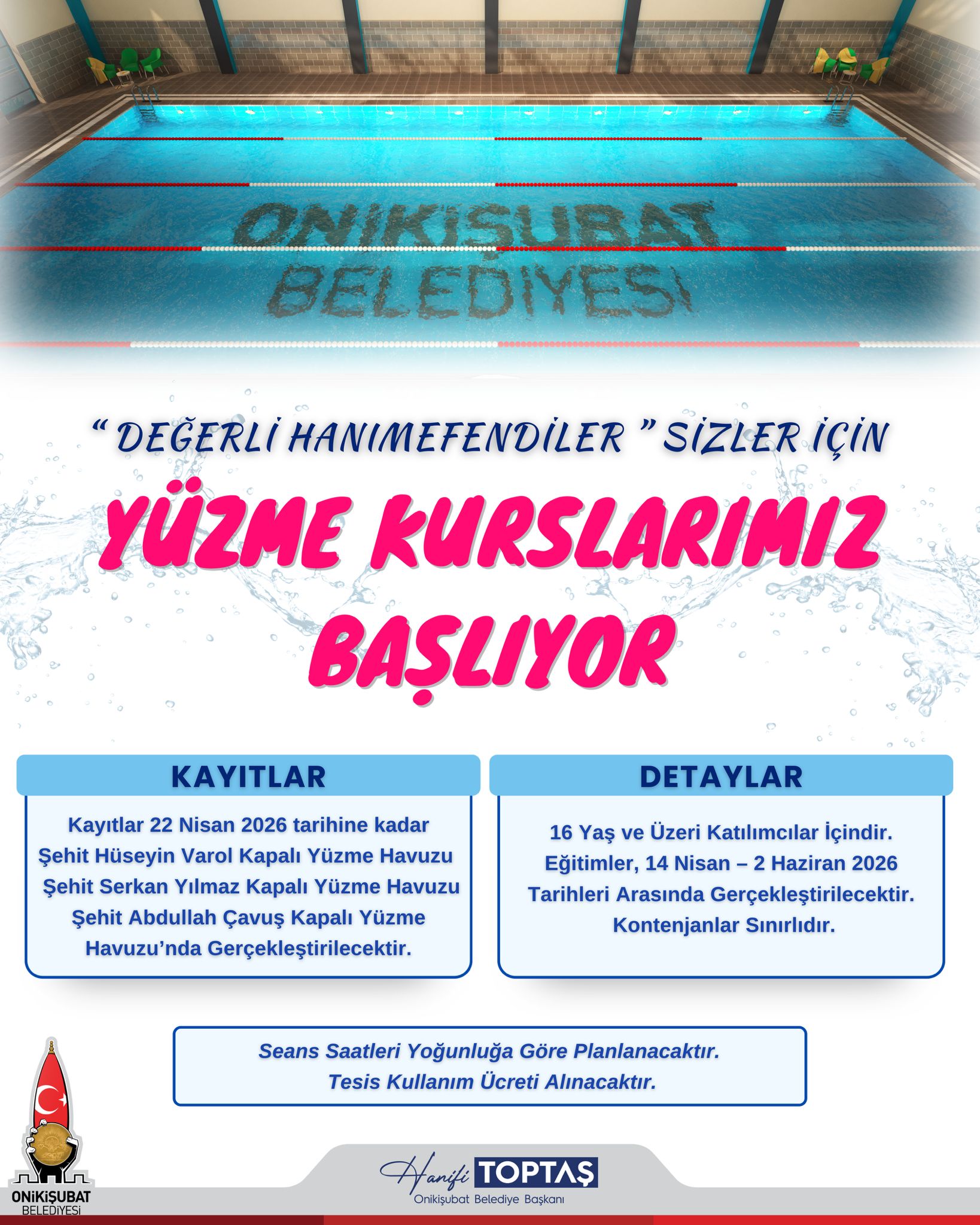 Onikişubat Belediyesi, kadınların sosyal hayata daha aktif katılımını sağlamak ve sağlıklı yaşam alışkanlıklarını desteklemek amacıyla kadınlara özel yüzme kurslarını başlattı. Yoğun ilgi gören kurslar için kayıt süreci resmen başlarken, sınırlı kontenjan nedeniyle başvuruların kısa sürede dolması bekleniyor.