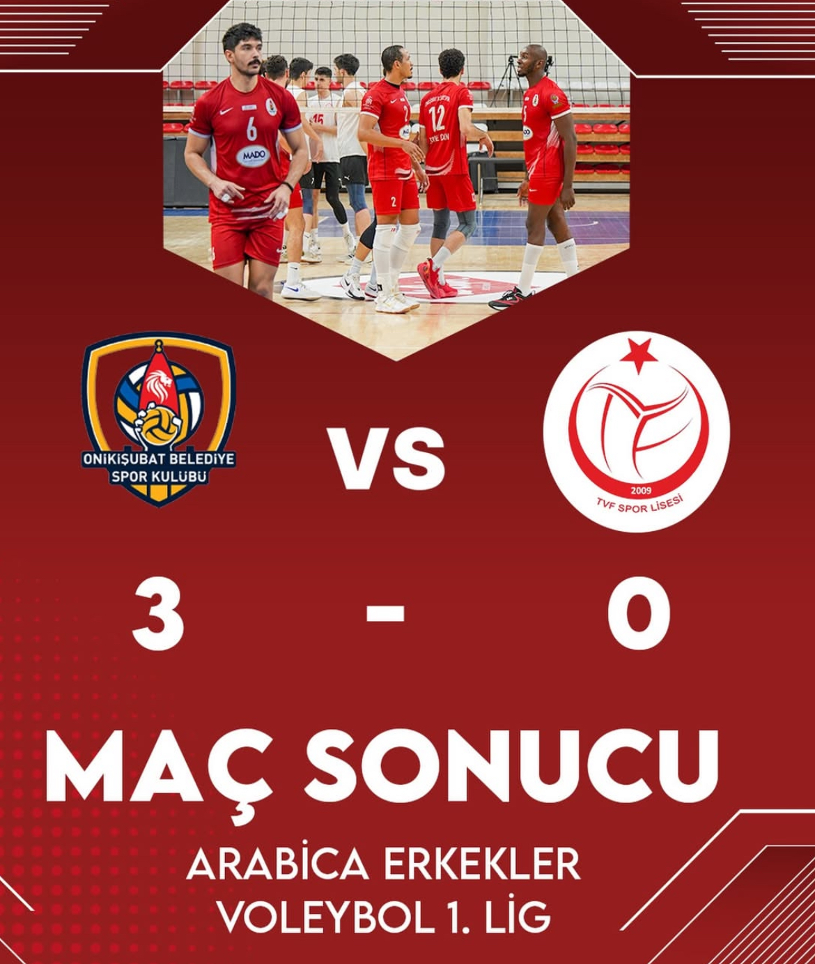 Arabica Coffee House Erkekler 1. Liginde mücadele eden Onikişubat Belediyespor Voleybol Takımı, sahasında ağırladığı TVF Spor Lisesini 3-0 mağlup ederek ligdeki çıkışını sürdürdü. Kırmızı-beyazlı ekip, hem oyun üstünlüğü hem de tribün enerjisiyle taraftarına keyifli bir galibiyet armağan etti.