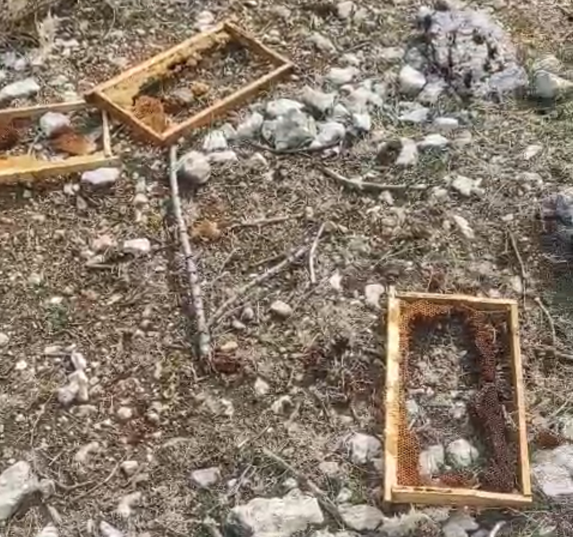 “Sabah arılığa gittiğimizde manzarayı görünce şok olduk. Kovanlar darmadağın olmuş, petekler parçalanmış. Ayı bütün balları yemiş. Maddi olarak ciddi zarardayız.”