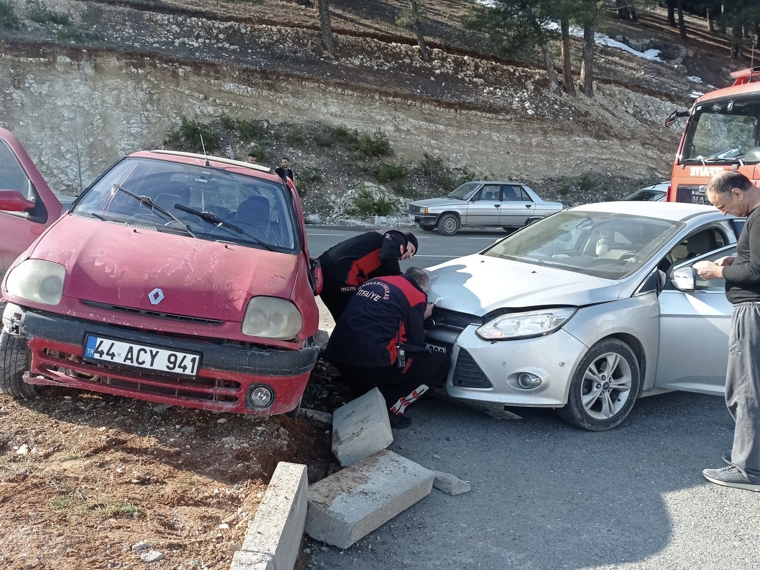Edinilen bilgilere göre, henüz nedeni belirlenemeyen kazada iki araç çarpıştı. Çarpışmanın etkisiyle araçlarda sıkışan iki vatandaş, olay yerine sevk edilen itfaiye ekiplerinin müdahalesiyle bulundukları yerden çıkarıldı.
