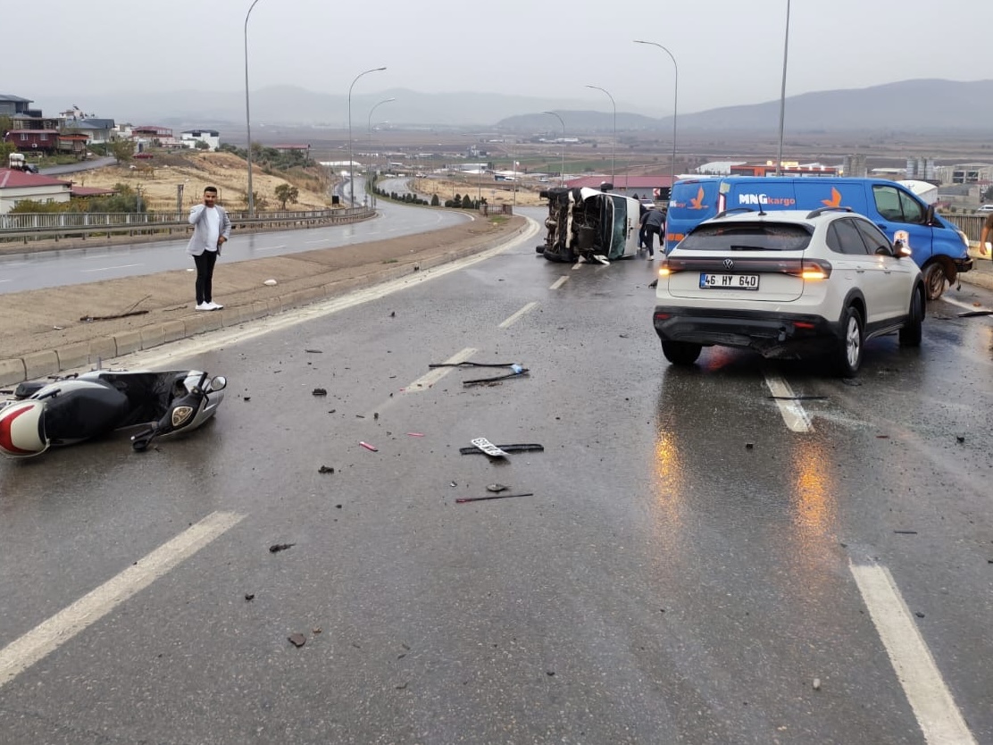 Kahramanmaraş’ın Onikişubat ilçesi Vadi Mahallesi altı, Sünbüllü Kavşağı yakınlarında meydana gelen zincirleme kazada bir otomobil, bir motosiklet, bir kargo aracı ve bir servis minibüsü çarpıştı. Kazaya, yola dökülen kaygan bir maddenin neden olduğu öğrenildi.