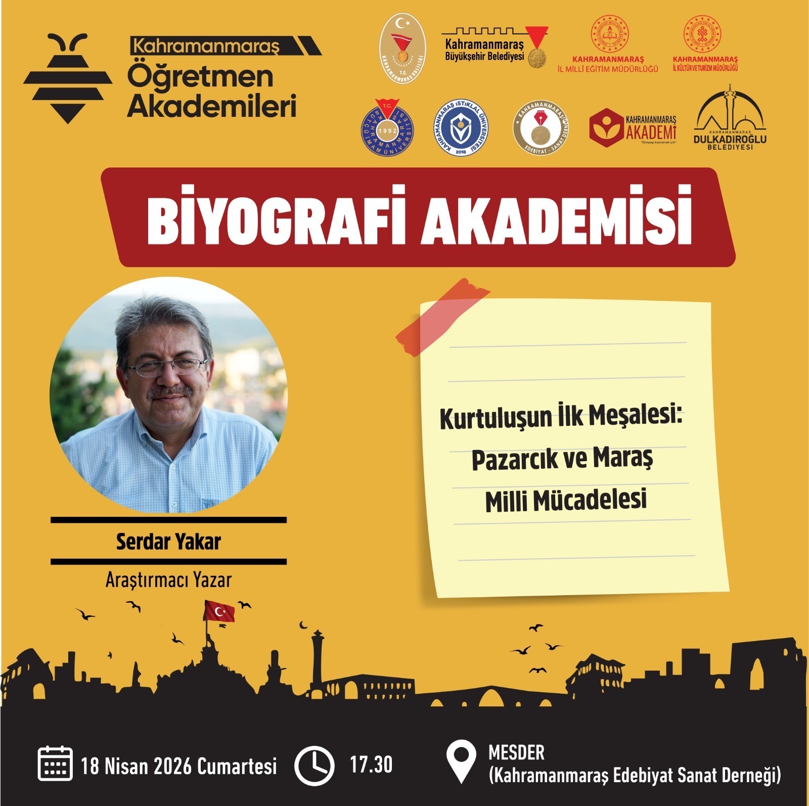 Etkinliğin dikkat çeken bölümlerinden biri ise Biyografi Akademisi kapsamında gerçekleştirilecek söyleşi olacak. Araştırmacı-yazar Serdar Yakar, “Kurtuluşun İlk Meşalesi: Pazarcık ve Maraş Millî Mücadelesi” başlıklı sunumuyla öğretmenleri tarihî bir yolculuğa çıkaracak.