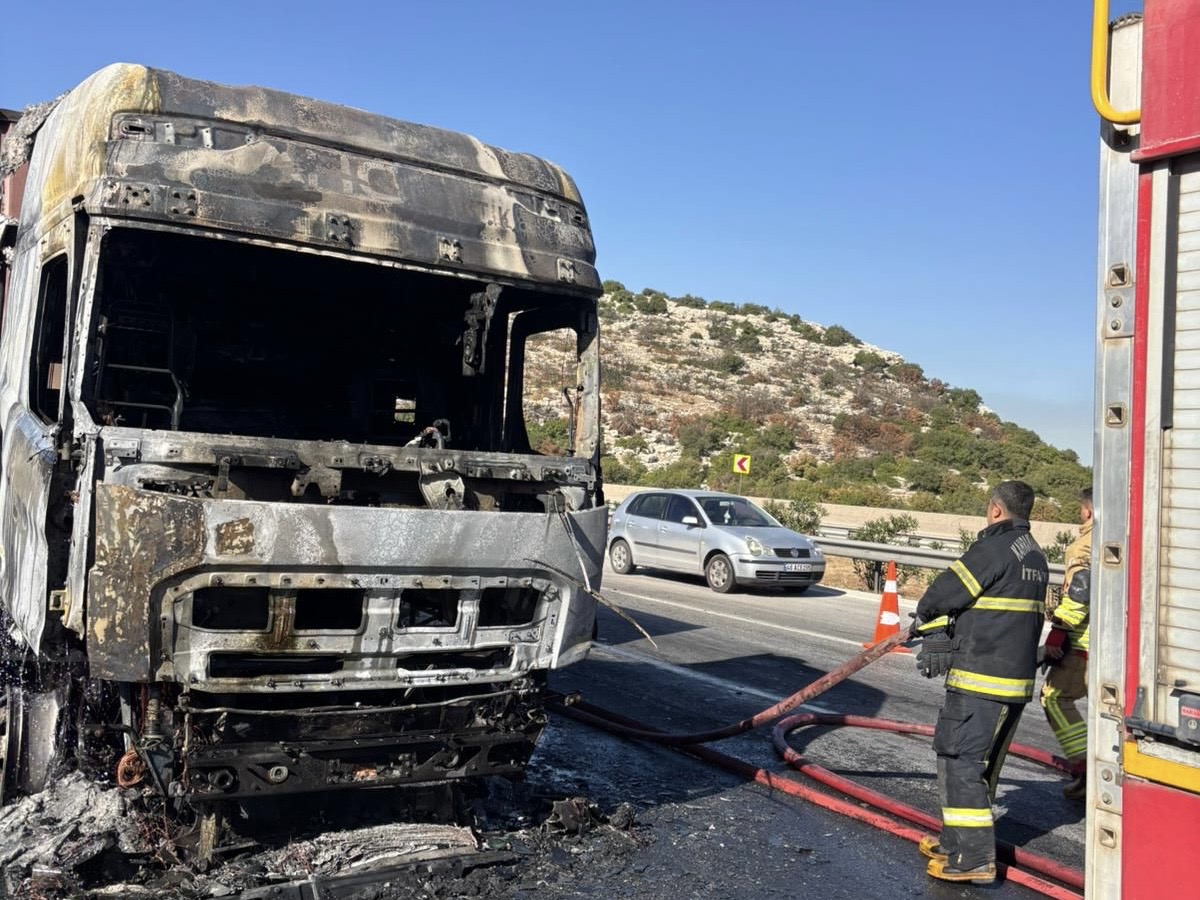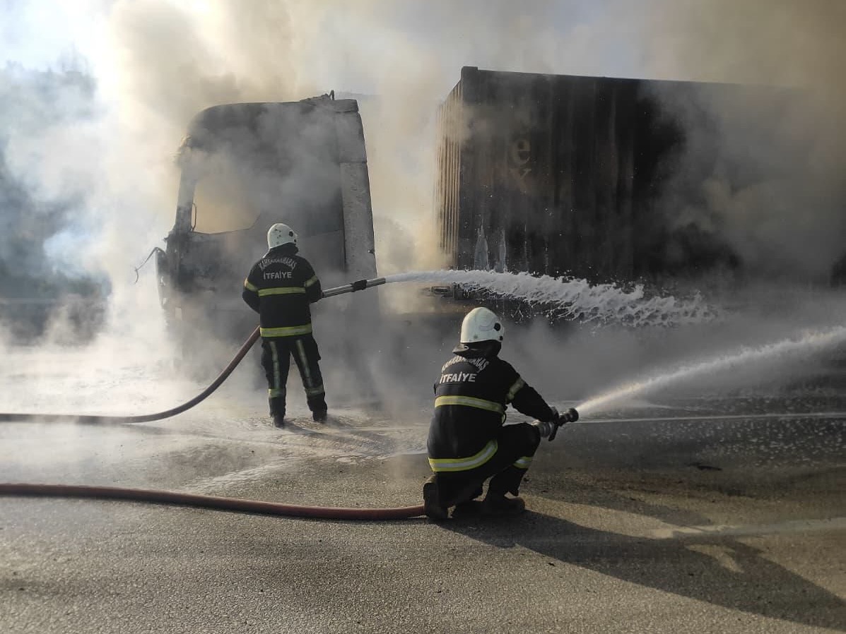 Edinilen bilgilere göre, otoban üzerinde ilerleyen tırın motor kısmından henüz belirlenemeyen bir nedenle dumanlar yükseldi. Kısa sürede tüm aracı saran alevlere, Kahramanmaraş Büyükşehir Belediyesi İtfaiye Dairesi Başkanlığı ekipleri müdahale etti. Yangın uzun uğraşlar sonucu kontrol altına alınırken, tır tamamen yanarak kullanılamaz hale geldi.