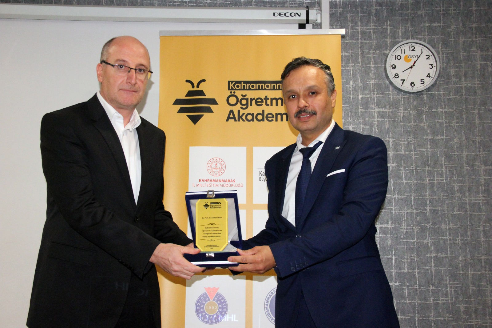 Toplantının sonunda İl Millî Eğitim Müdür Yardımcısı Muharrem Dilipak, eğitime ve öğretmenlik mesleğine katkılarından dolayı Prof. Dr. Serkan Ünsal’a teşekkür plaketi takdim etti.