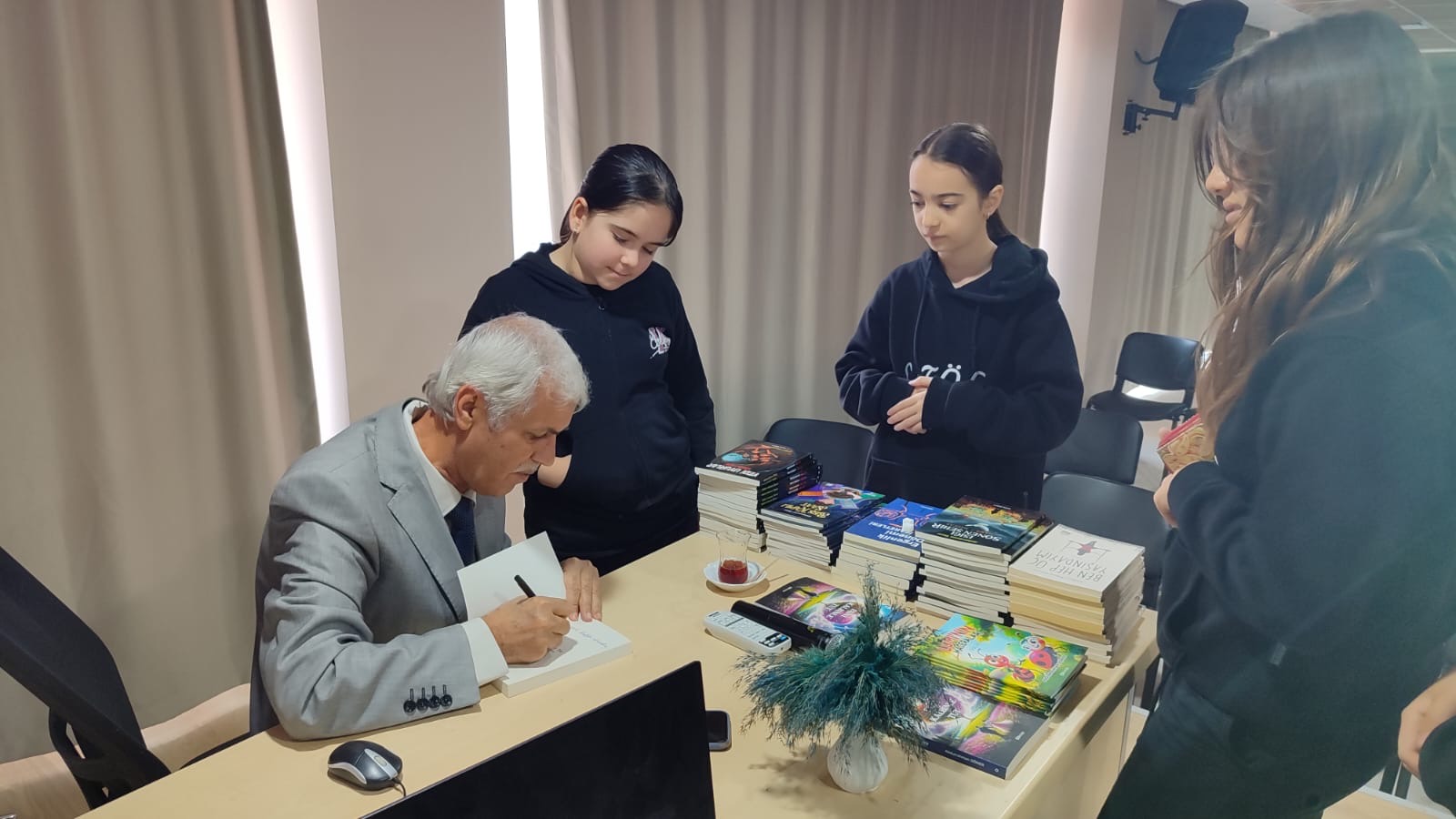 Öğrenciler, yazarla tanışmanın heyecanını yaşarken pek çoğu “bugünden itibaren daha fazla kitap okuyacağı” yönünde sözler verdi.
