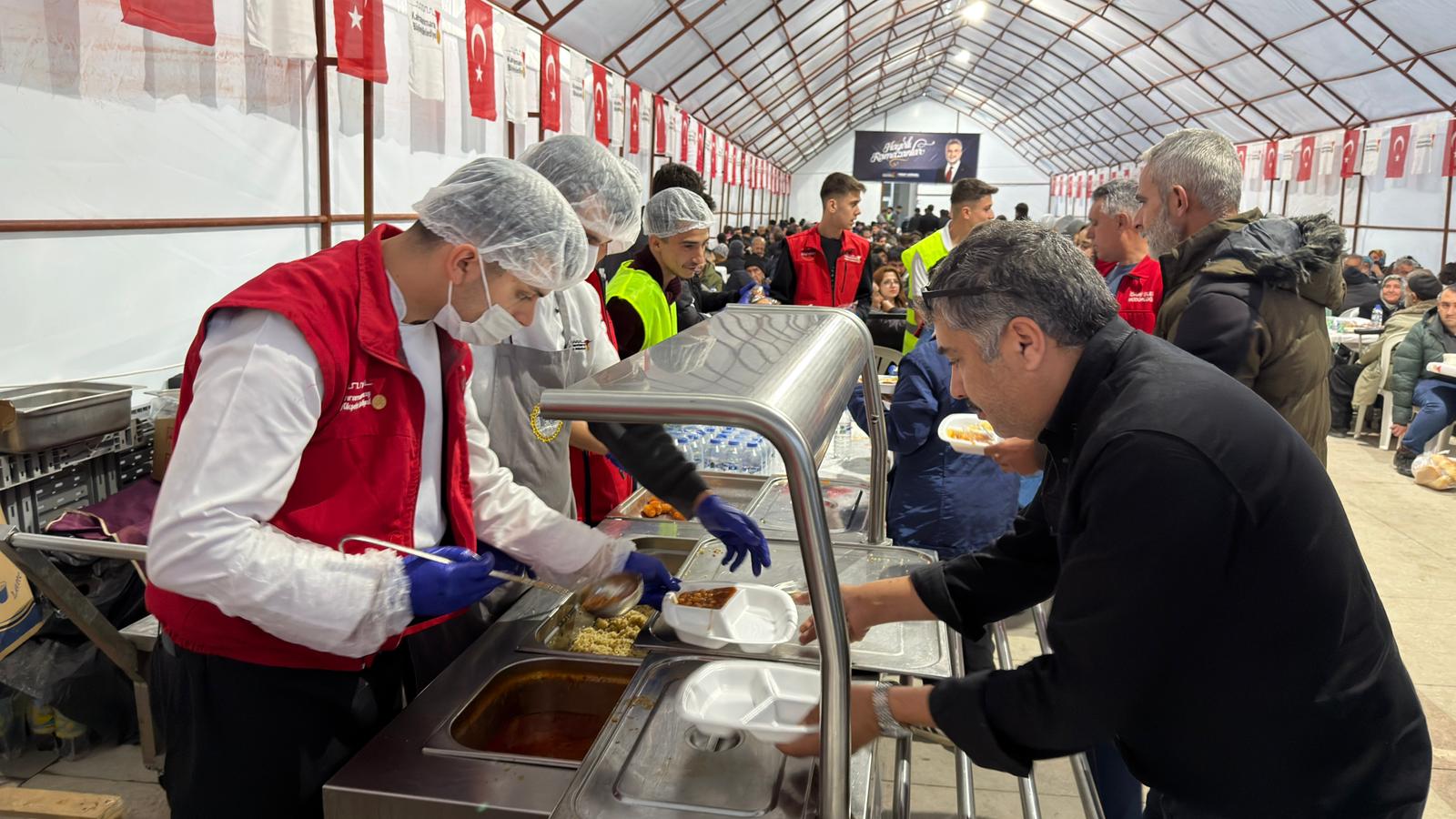 Kahramanmaraş Büyükşehir Belediyesi, Ramazan ayının manevi atmosferini şehrin dört bir yanında yaşatmaya devam ediyor. Ramazan’ın beşinci gününde de binlerce vatandaş iftar sofralarında bir araya gelirken, paylaşma ve dayanışma duygusu aynı sofrada buluştu. Büyükşehir Belediyesi tarafından kurulan iftar çadırları ve organizasyon alanları, bu kez de yoğun katılıma sahne oldu. Ramazan Sokağı, Milli İrade Meydanı ve Dulkadiroğlu Namık Kemal Mahallesi’nde kurulan sofralarda binlerce kişi aynı anda oruç açtı. Dualar eşliğinde açılan iftarlar, Ramazan’ın birlik ve beraberlik ruhunu bir kez daha gözler önüne serdi.