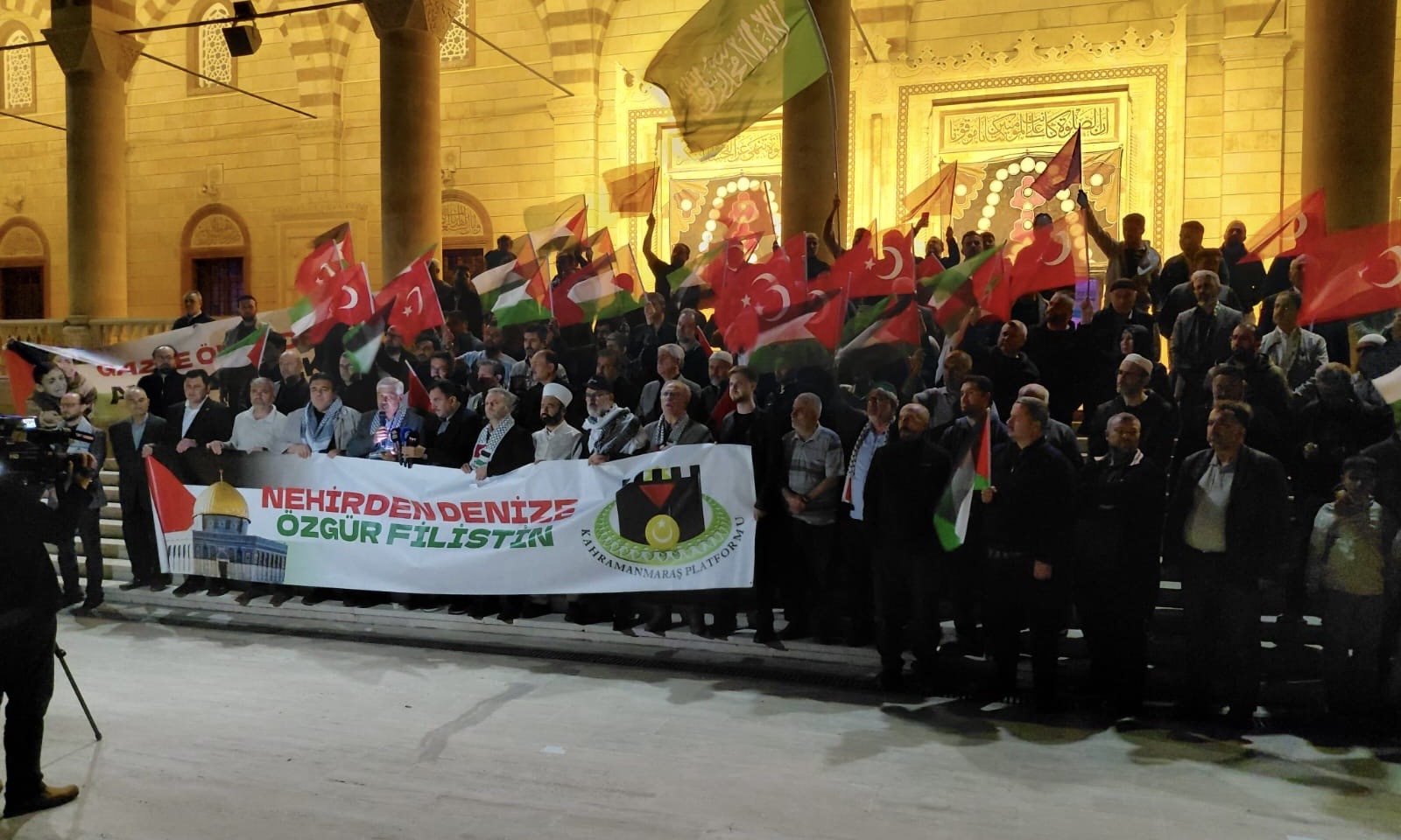 30 Nisan akşamı yatsı namazının ardından gerçekleştirilen programda, katılımcılar Gazze’de yaşanan insanlık dramına dikkat çekti. Camii avlusunda toplanan kalabalık, sloganlar ve dualarla Filistin halkının yanında olduklarını ifade etti.