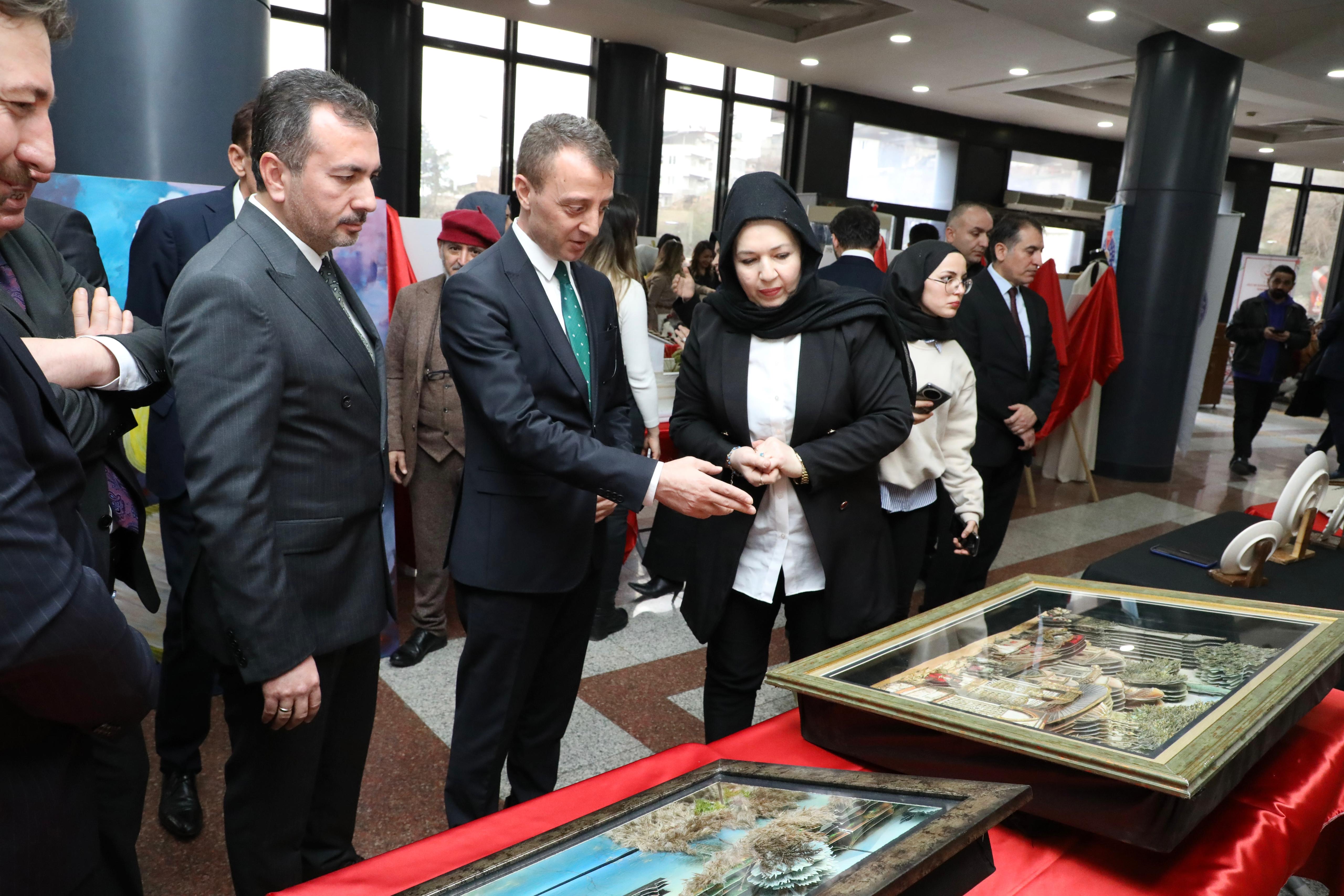 Kahramanmaraş’ın asırlara dayanan tarihî geçmişini, kültürel zenginliğini ve sanatsal birikimini yansıtan sergide; geleneksel el sanatlarından kültürel motiflere kadar birçok özgün eser yer aldı. Sergilenen çalışmalar, şehrin köklü medeniyet mirasını günümüze taşıyan önemli örnekler olarak dikkat çekti.
