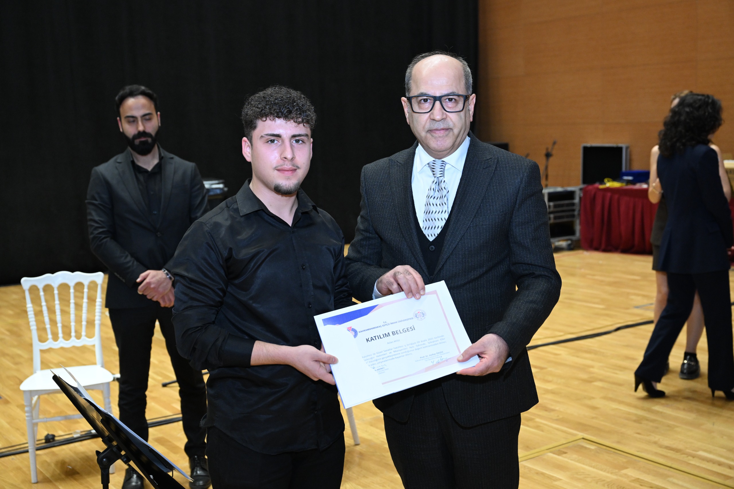 Konserin sonunda, etkinliğe katkı sunan akademisyen ve öğrencilere teşekkür belgeleri protokol tarafından takdim edildi. Program, sahnede çekilen toplu hatıra fotoğrafıyla son buldu.