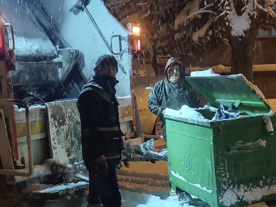 Soğuk hava ve kaygan zemin şartlarına rağmen görev başında olan Çevre Koruma ve Kontrol Müdürlüğü ekipleri, vatandaşların sağlıklı ve temiz bir çevrede yaşamlarını sürdürebilmesi için gece gündüz demeden çalışmalarına devam ediyor.